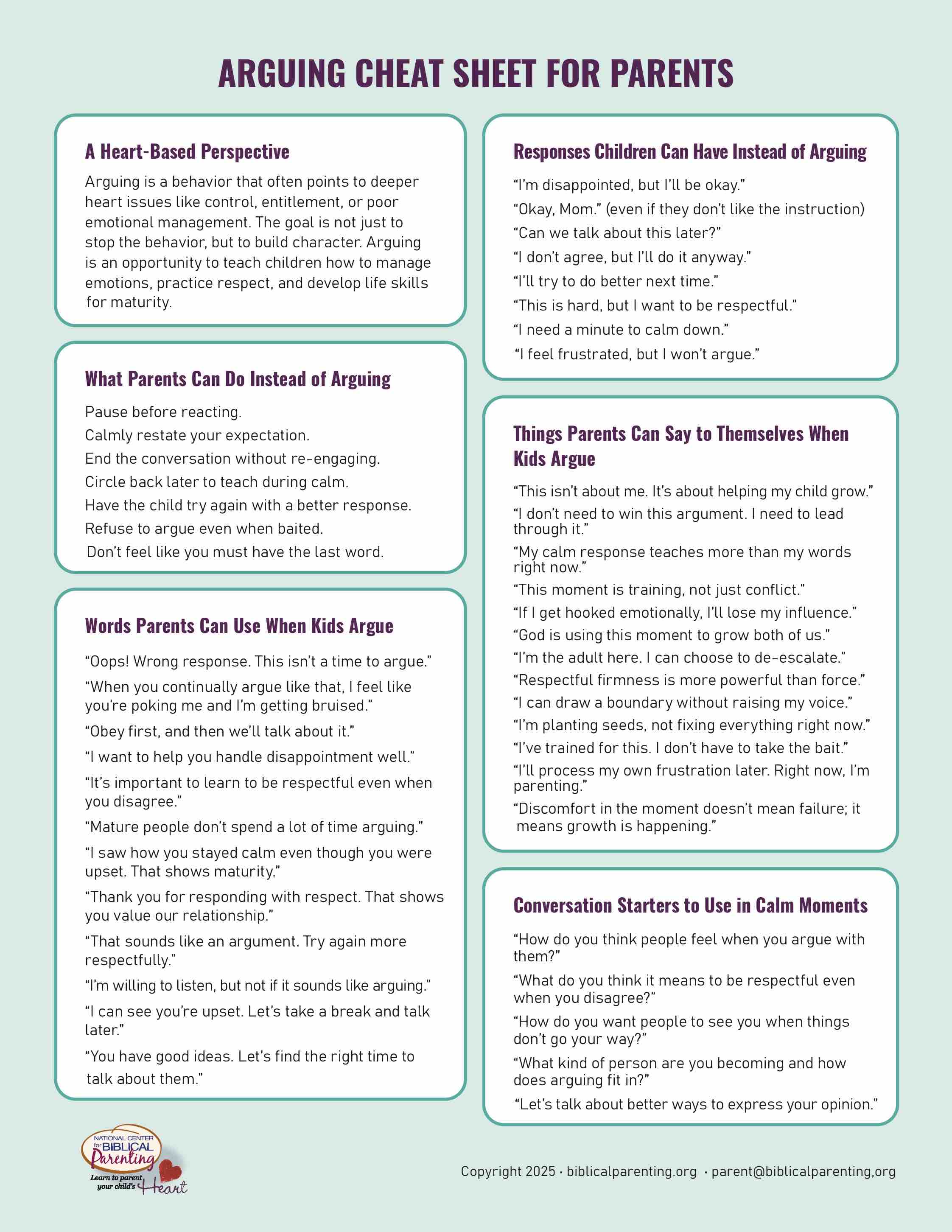 The Leader's Guide for this course is a treasure in itself. It contains Leader Suggestions, Note Taking Pages, Discussion Questions AND a special BONUS Infographic providing practical takeaways for any home. Here's just one example of the Infographic taken from Session 1: How to Stop the Arguing.